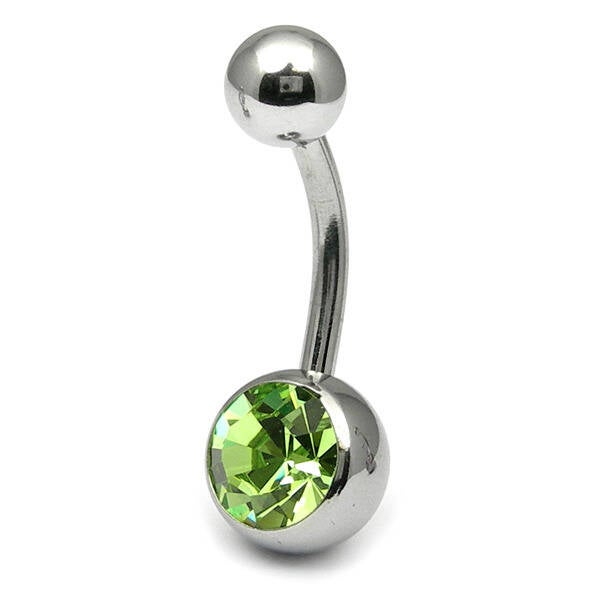 • Lovely single jewelled surgical steel belly bar available in a wide range of colours and sizes.